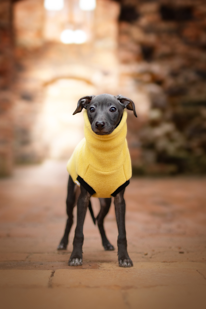 Ubranka projektujemy z myślą wyłącznie o charcikach włoskich, dlatego ich krój idealnie odpowiada tej wyjątkowej, wymagającej sylwetce. Dzięki zastosowanym materiałom kombinezon jest łatwy do założenia, wygodny i nie krępuje ruchów, co pozwala czworonogowi swobodnie biegać, bawić się i odpoczywać.