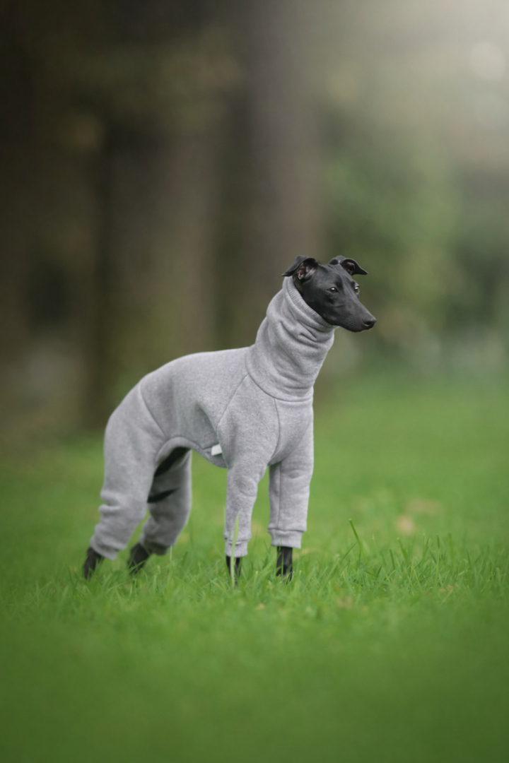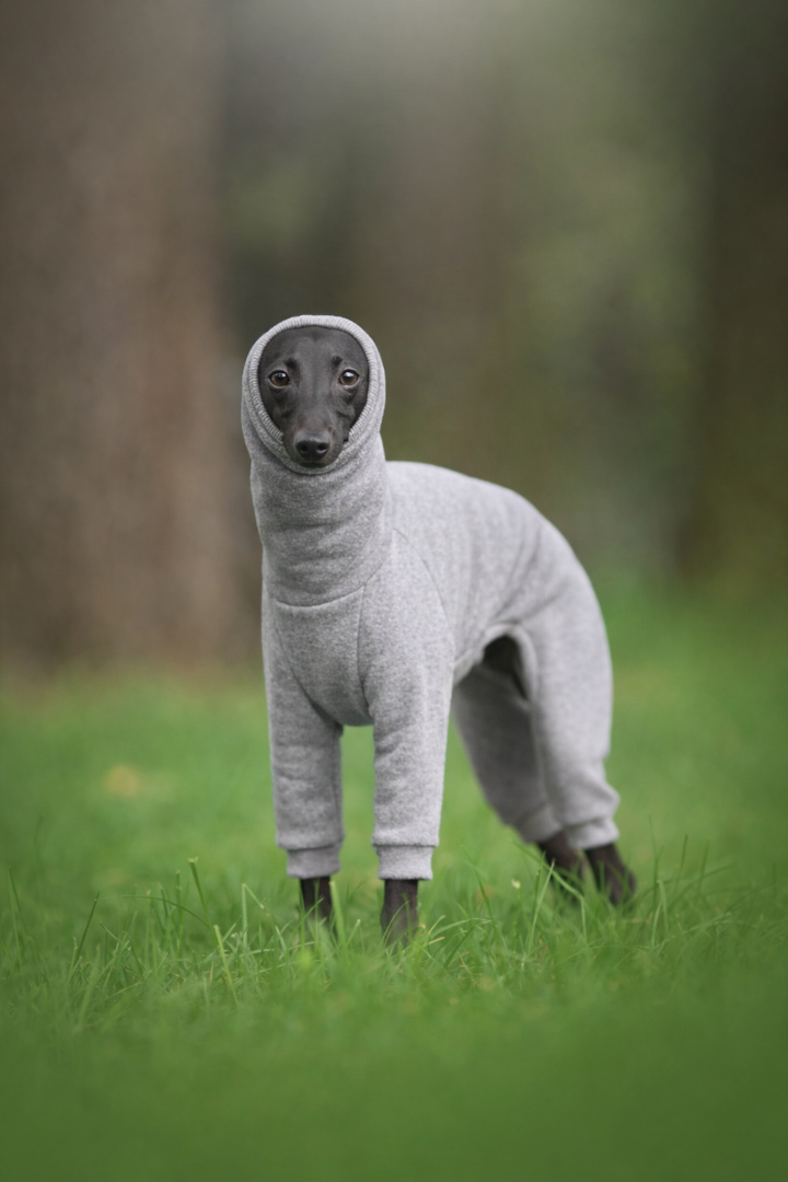 Ubranka projektujemy z myślą wyłącznie o charcikach włoskich, dlatego ich krój idealnie odpowiada tej wyjątkowej, wymagającej sylwetce. Dzięki zastosowanym materiałom kombinezon jest łatwy do założenia, wygodny i nie krępuje ruchów, co pozwala czworonogowi swobodnie biegać, bawić się i odpoczywać.