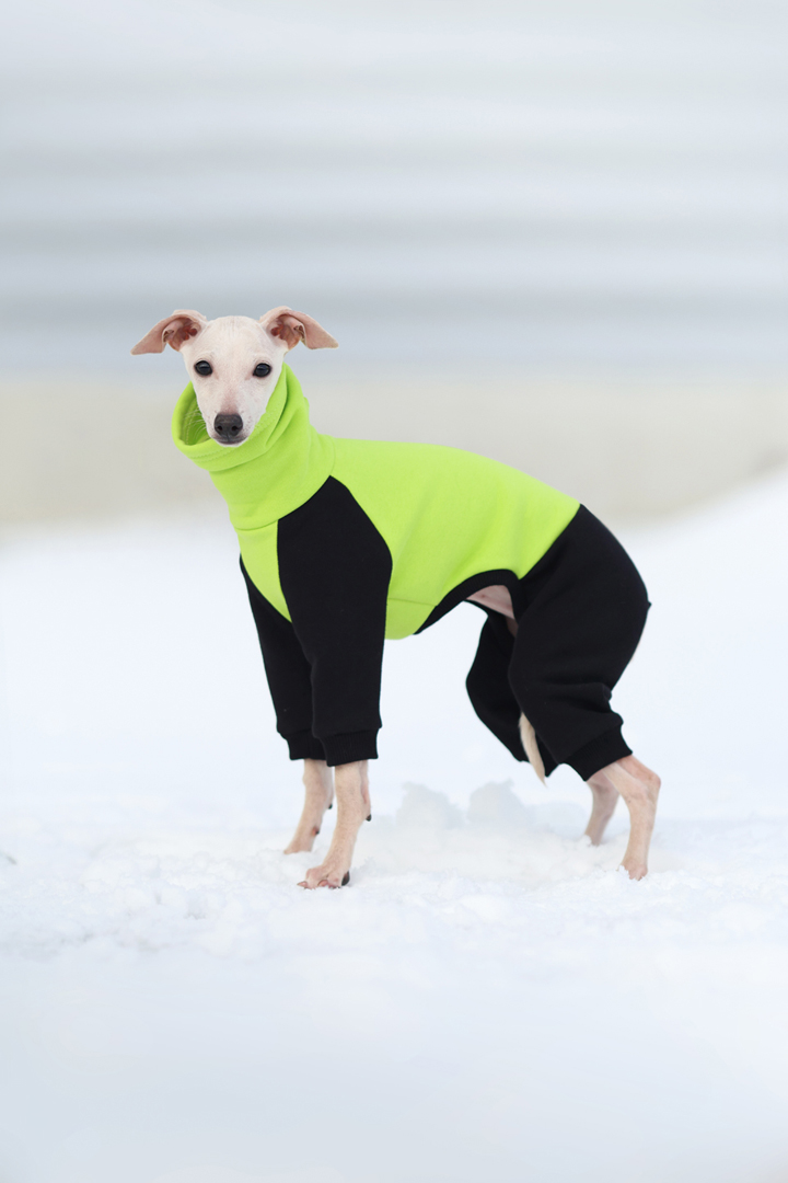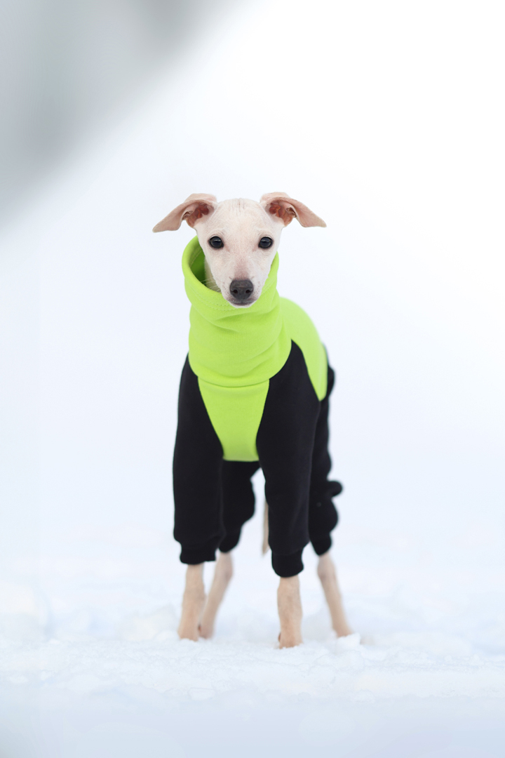 Ubranka projektujemy z myślą wyłącznie o charcikach włoskich, dlatego ich krój idealnie odpowiada tej wyjątkowej, wymagającej sylwetce. Dzięki zastosowanym materiałom kombinezon jest łatwy do założenia, wygodny i nie krępuje ruchów, co pozwala czworonogowi swobodnie biegać, bawić się i odpoczywać.