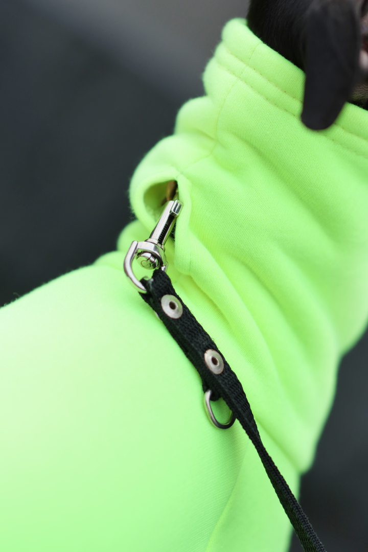 Każdy kombinezon wykończony jest kolorystycznie dopasowanym ściągaczem, który dodaje mu estetyki i chroni przed utratą ciepła. W okolicy szyjki znajduje się otwór na smycz, dzięki czemu ubranko świetnie sprawdza się podczas spacerów.