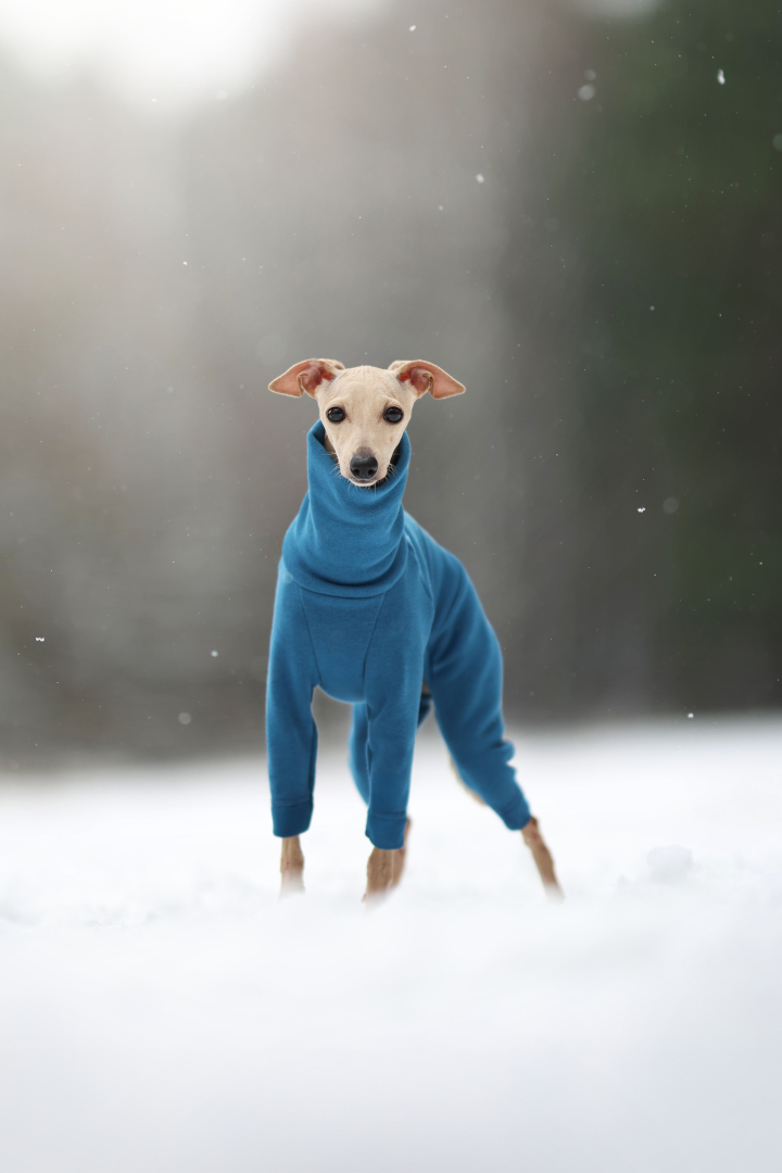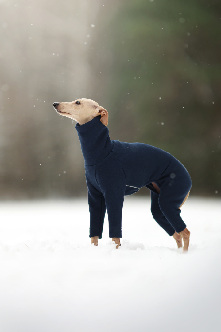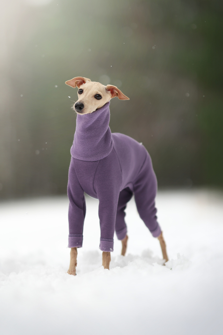 Poznaj Soft Style, kombinezon zaprojektowany specjalnie dla charcików włoskich - rasy wyjątkowo wrażliwej na chłód. Model wykonany jest z wysokiej jakości dresówki, która od wewnątrz posiada miękkie, przytulne futerko. Dzięki temu Soft Style jest ciepły, elastyczny, a jednocześnie oddychający, zapewniając pełen komfort podczas spacerów w chłodniejsze dni.