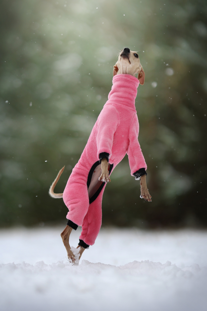 Minky Plush to kombinezon zaprojektowany z myślą o delikatnej i smukłej sylwetce charcików włoskich. Wykonany z wysokiej jakości dwustronnego polaru minky, zachwyca wyjątkową miękkością i zapewnia przyjemne ciepło w chłodniejsze dni.