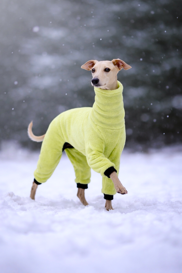 Minky Plush to kombinezon zaprojektowany z myślą o delikatnej i smukłej sylwetce charcików włoskich. Wykonany z wysokiej jakości dwustronnego polaru minky, zachwyca wyjątkową miękkością i zapewnia przyjemne ciepło w chłodniejsze dni.