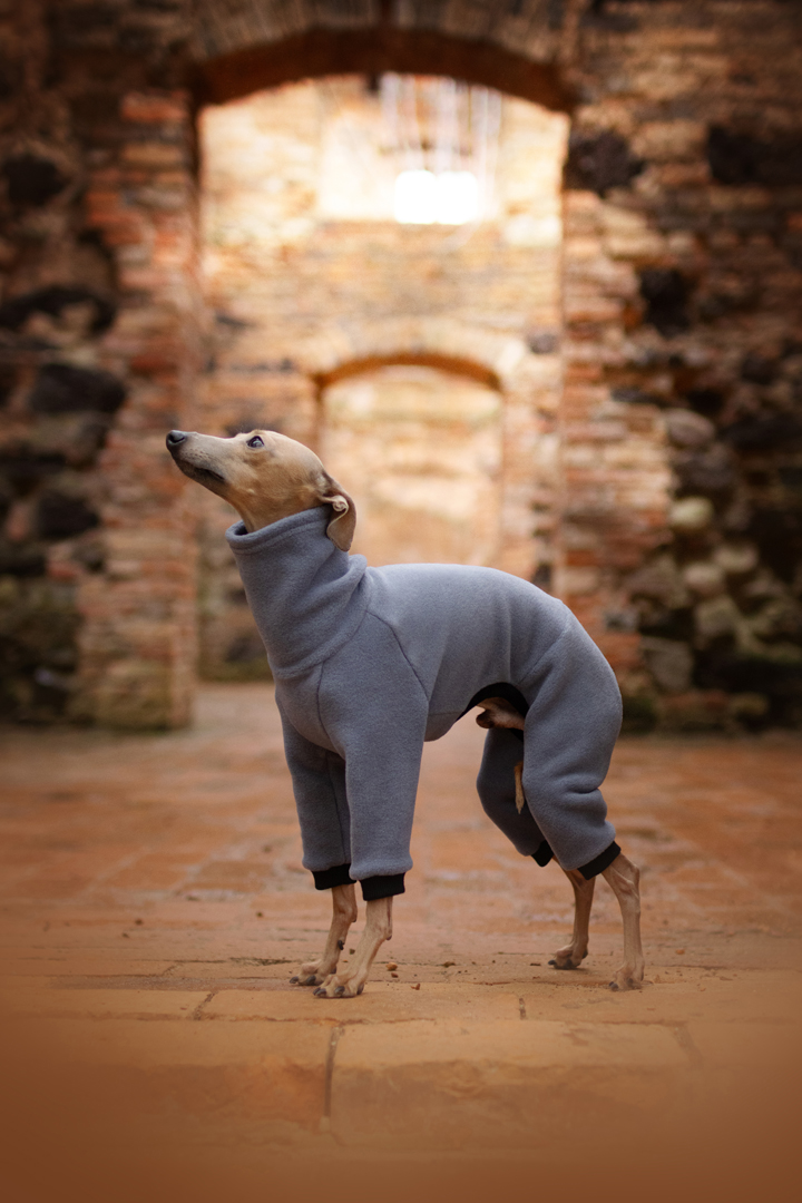 Ubranka projektujemy z myślą wyłącznie o charcikach włoskich, dlatego ich krój idealnie odpowiada tej wyjątkowej, wymagającej sylwetce. Dzięki zastosowanym materiałom kombinezon jest łatwy do założenia, wygodny i nie krępuje ruchów, co pozwala czworonogowi swobodnie biegać, bawić się i odpoczywać.